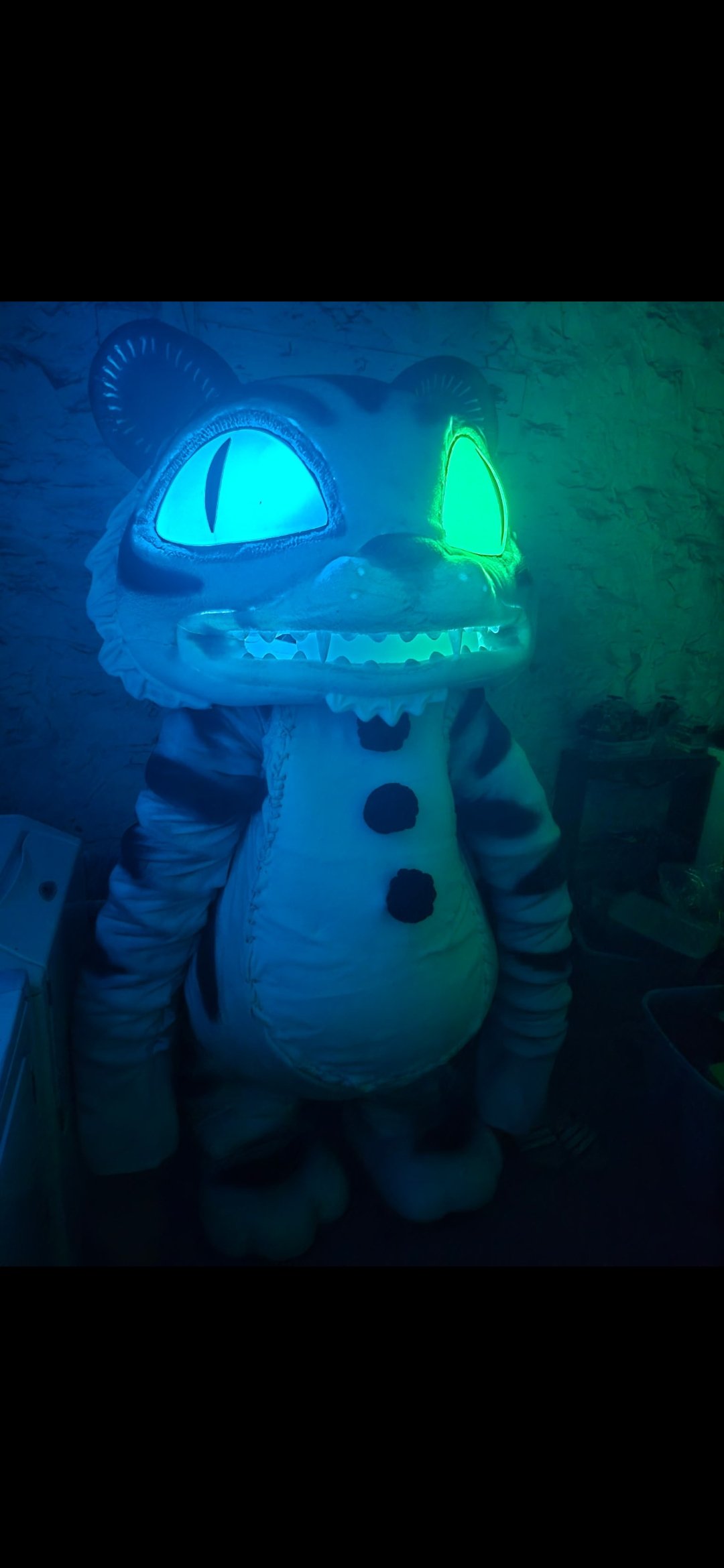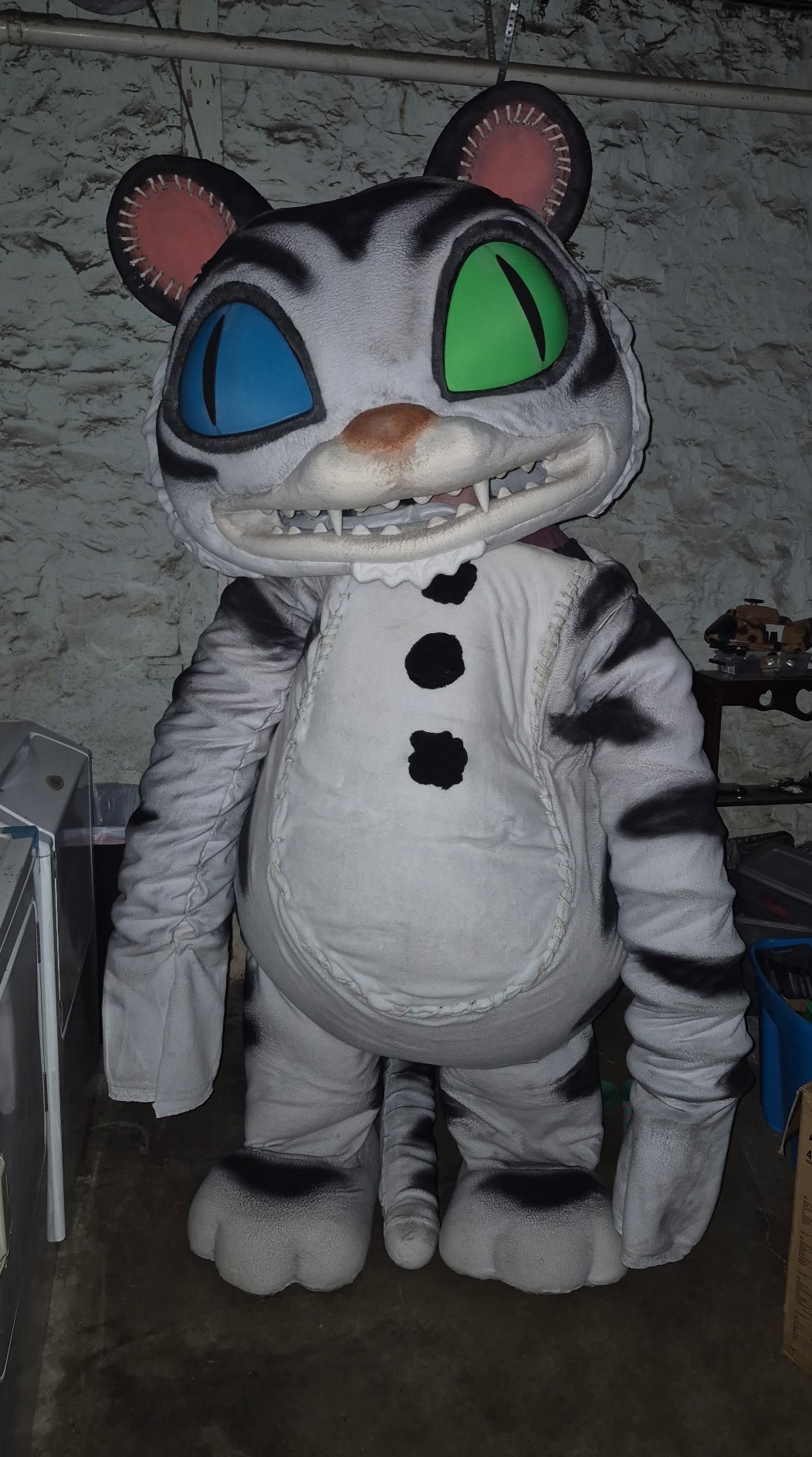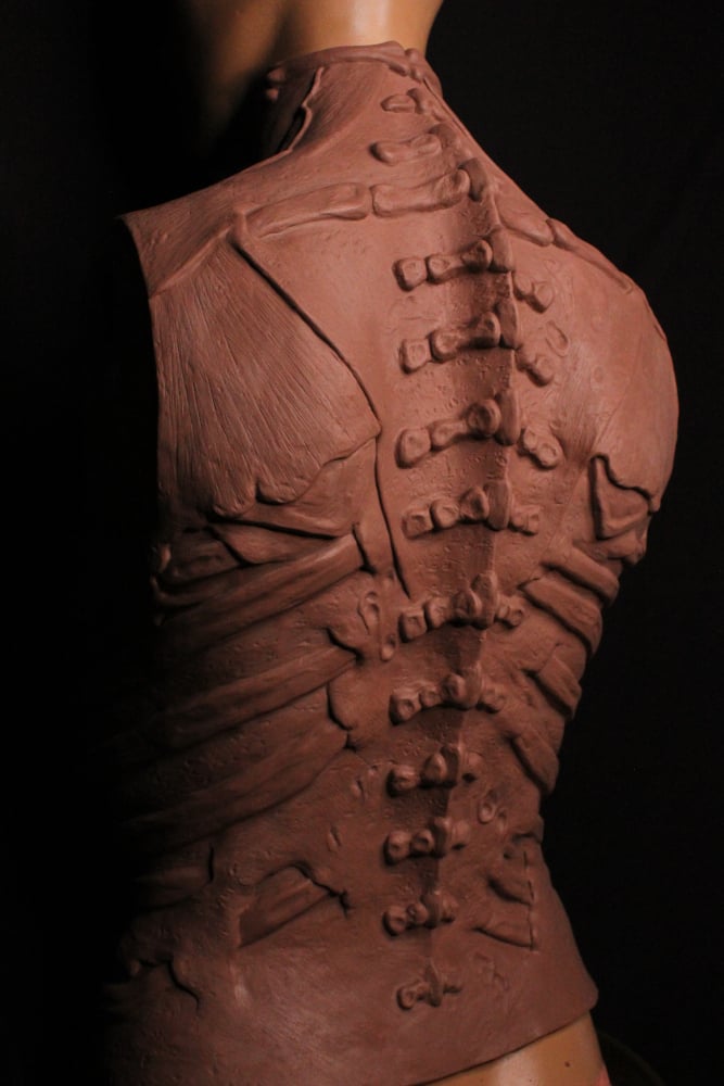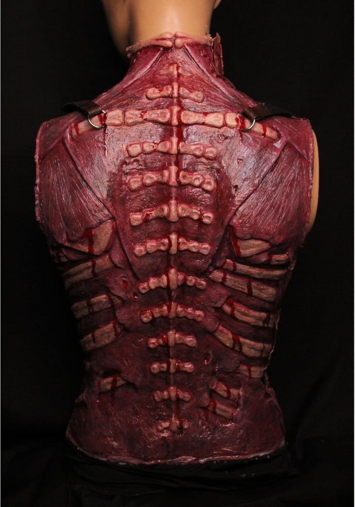 This character was created using various techniques. The entire back piece is made of EVA foam, including all the bones. The ones that protrude from the back are attached with PVC tubes.