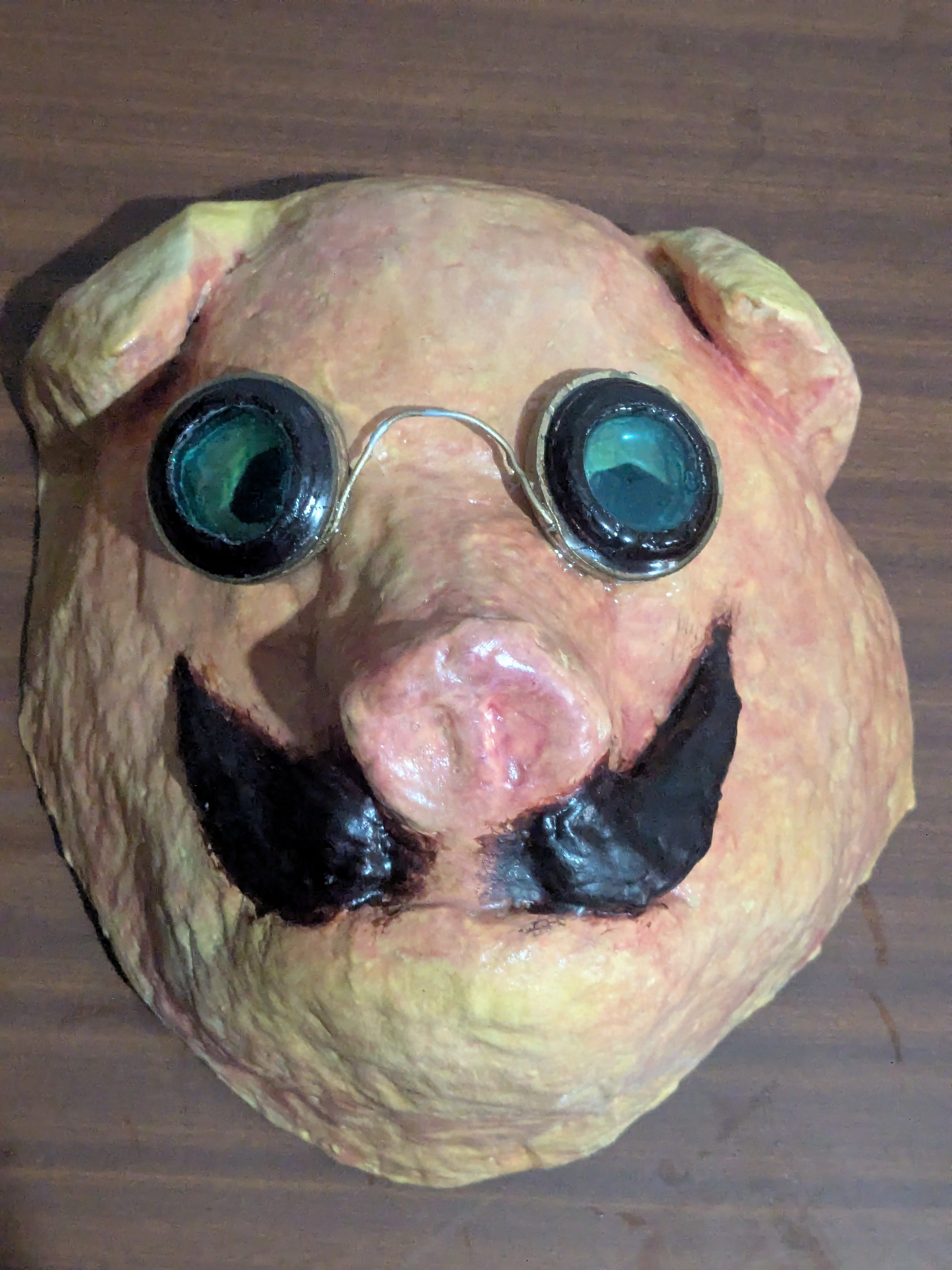 For the pig face, several parts of 3D models were selected to get a good balance of human and pig features. A rough template of my face was also created to ensure a proper fit on the understructure.
