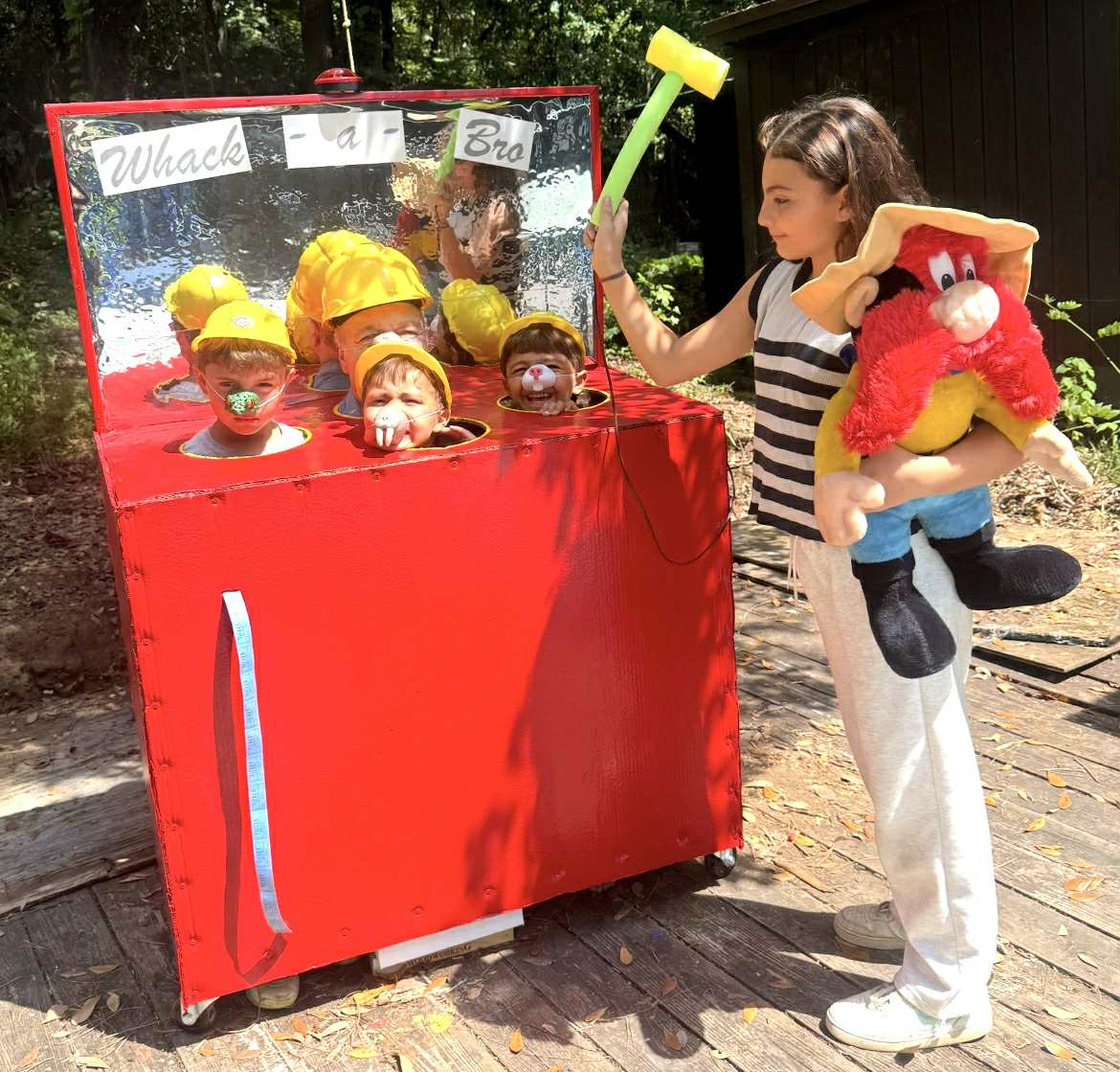 This is our family's 2025 Whack-a-Bro Halloween costume, constructed by me using recycled wood, cardboard, paint, and some accessories.