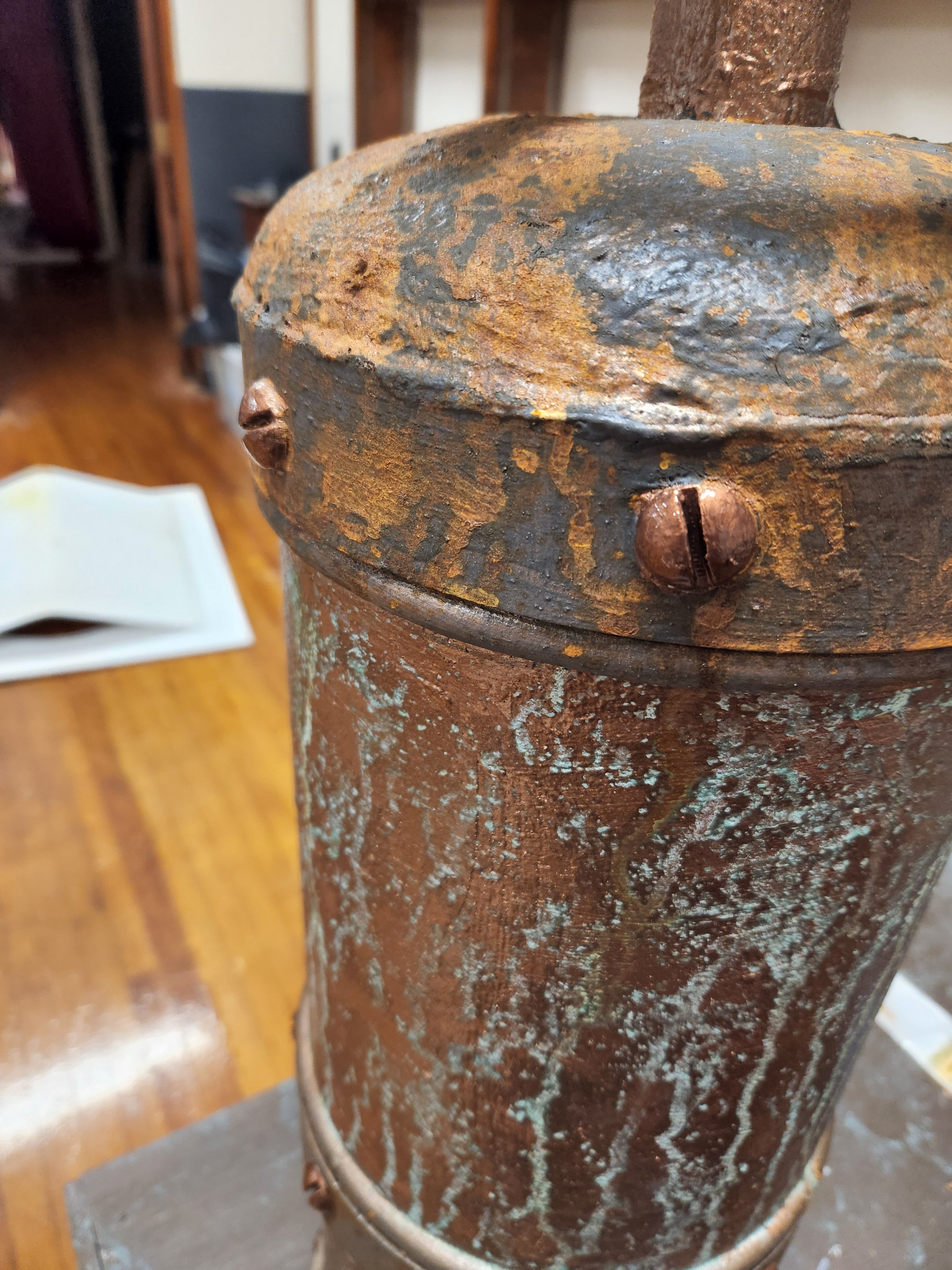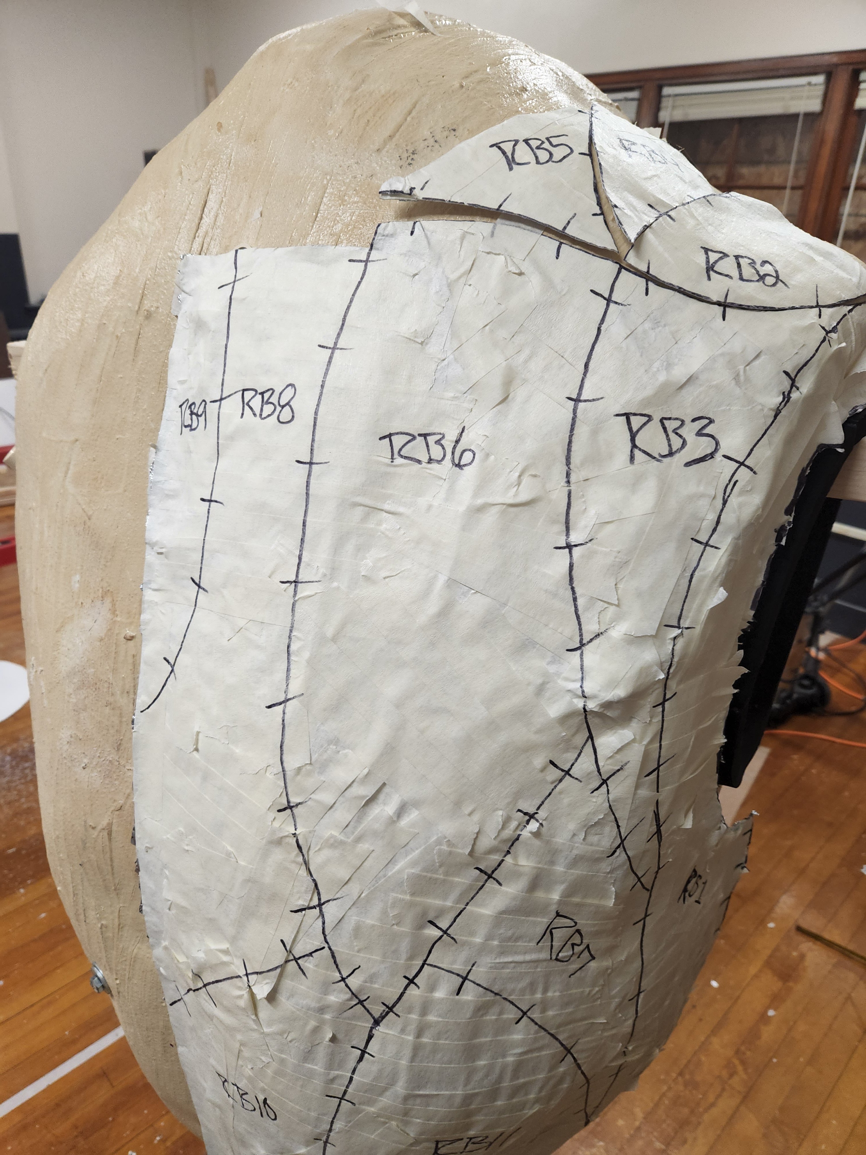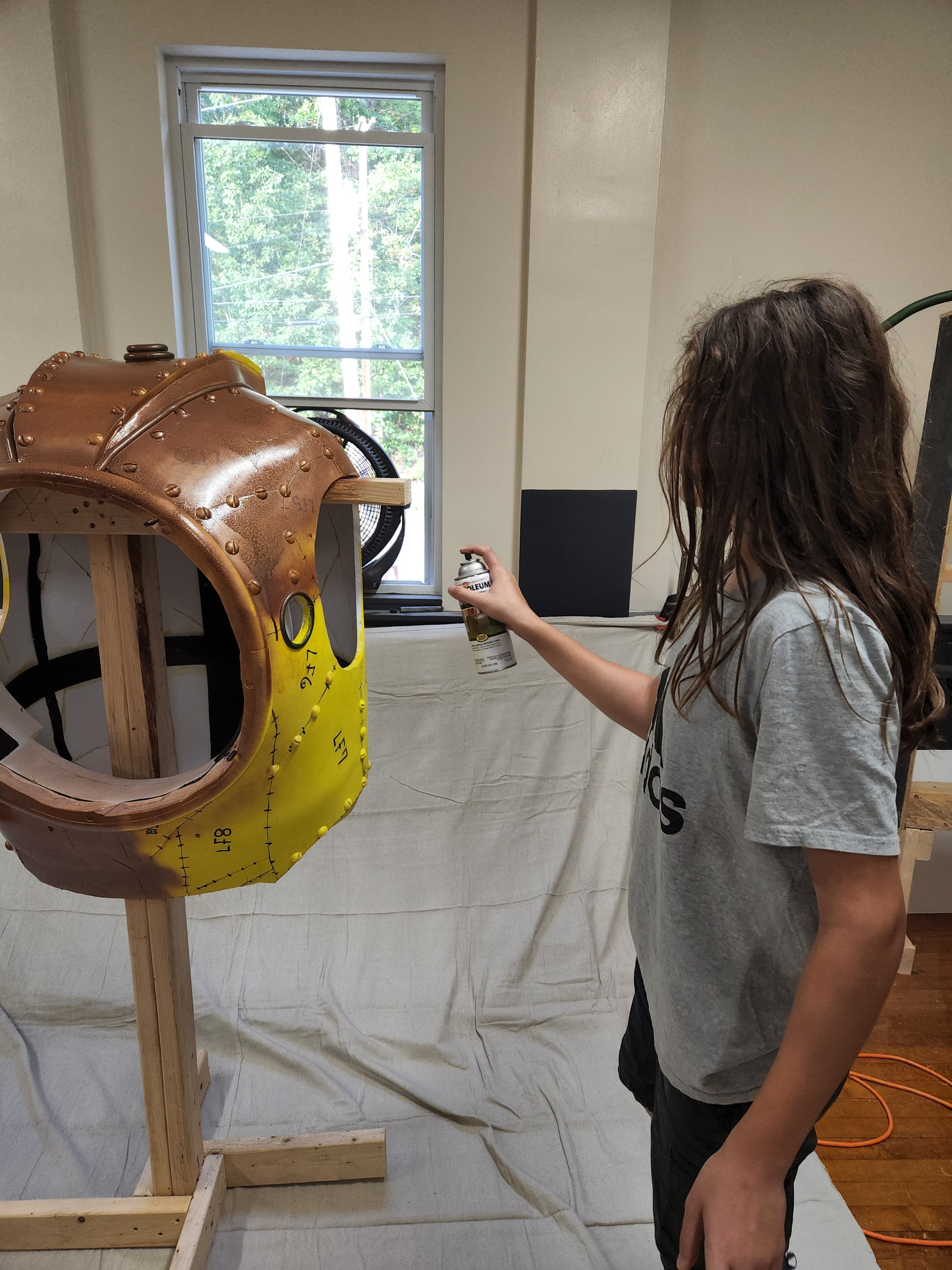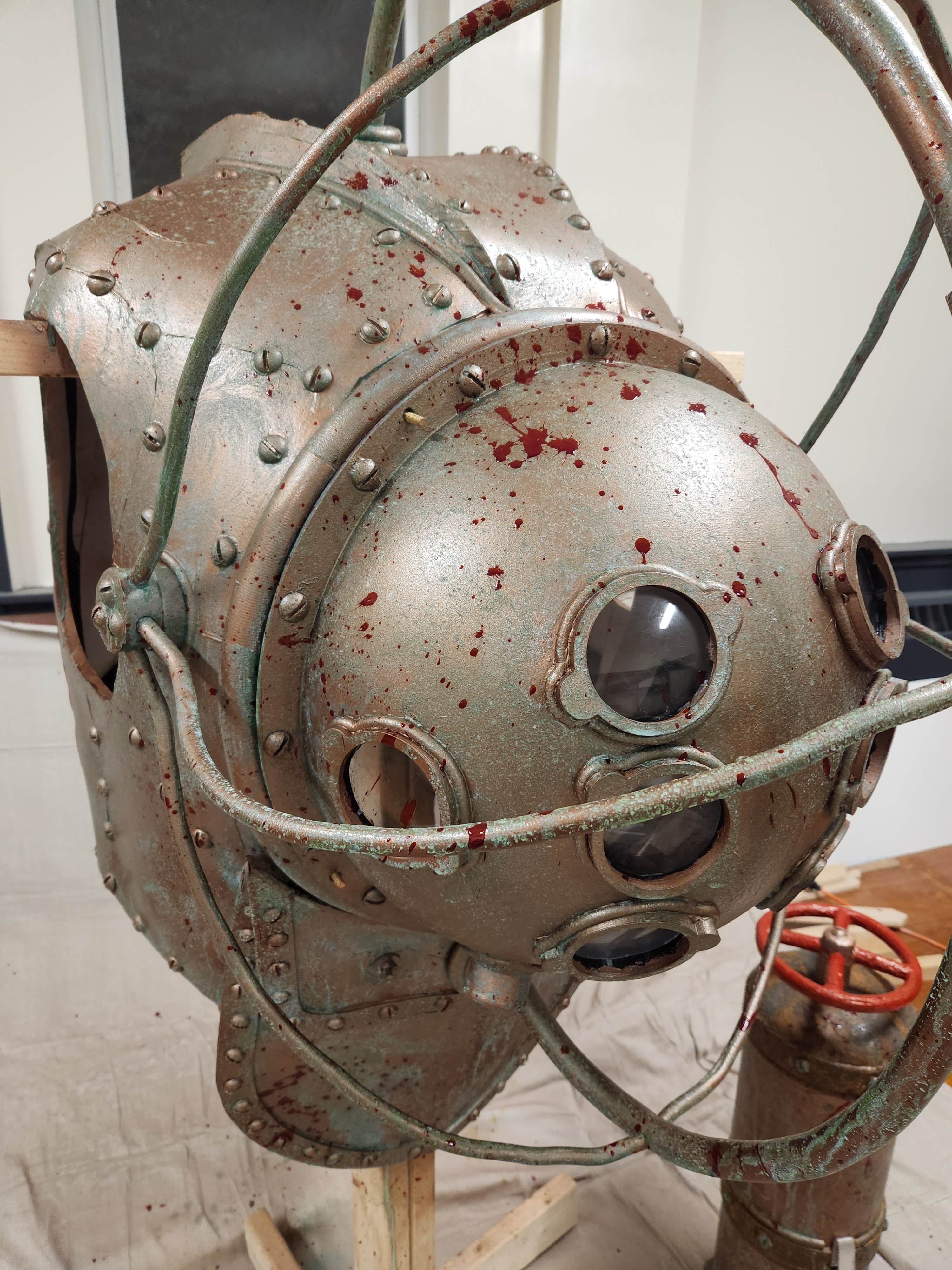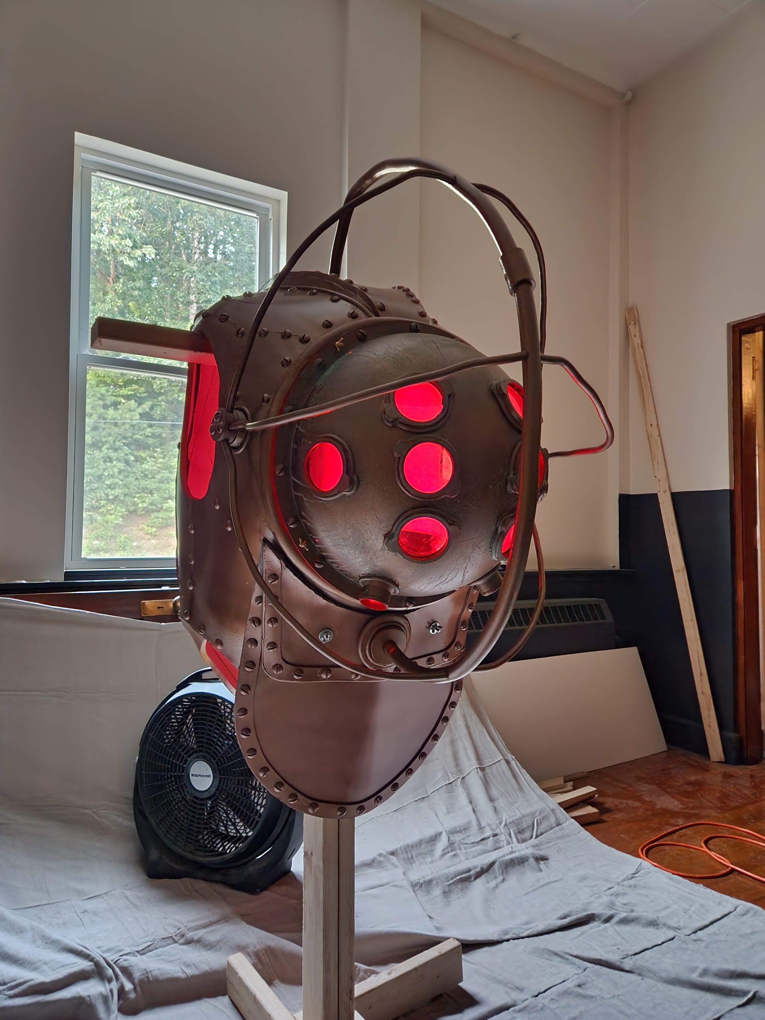 I made this Halloween costume for my son based on the Big Daddy character from the video game Bioshock. I originally created the body using expanding foam over a styrofoam frame, but the final result way much too heavy. I used this carved version to create my own pattern, which was then used to recreate it using much lighter EVA foam.