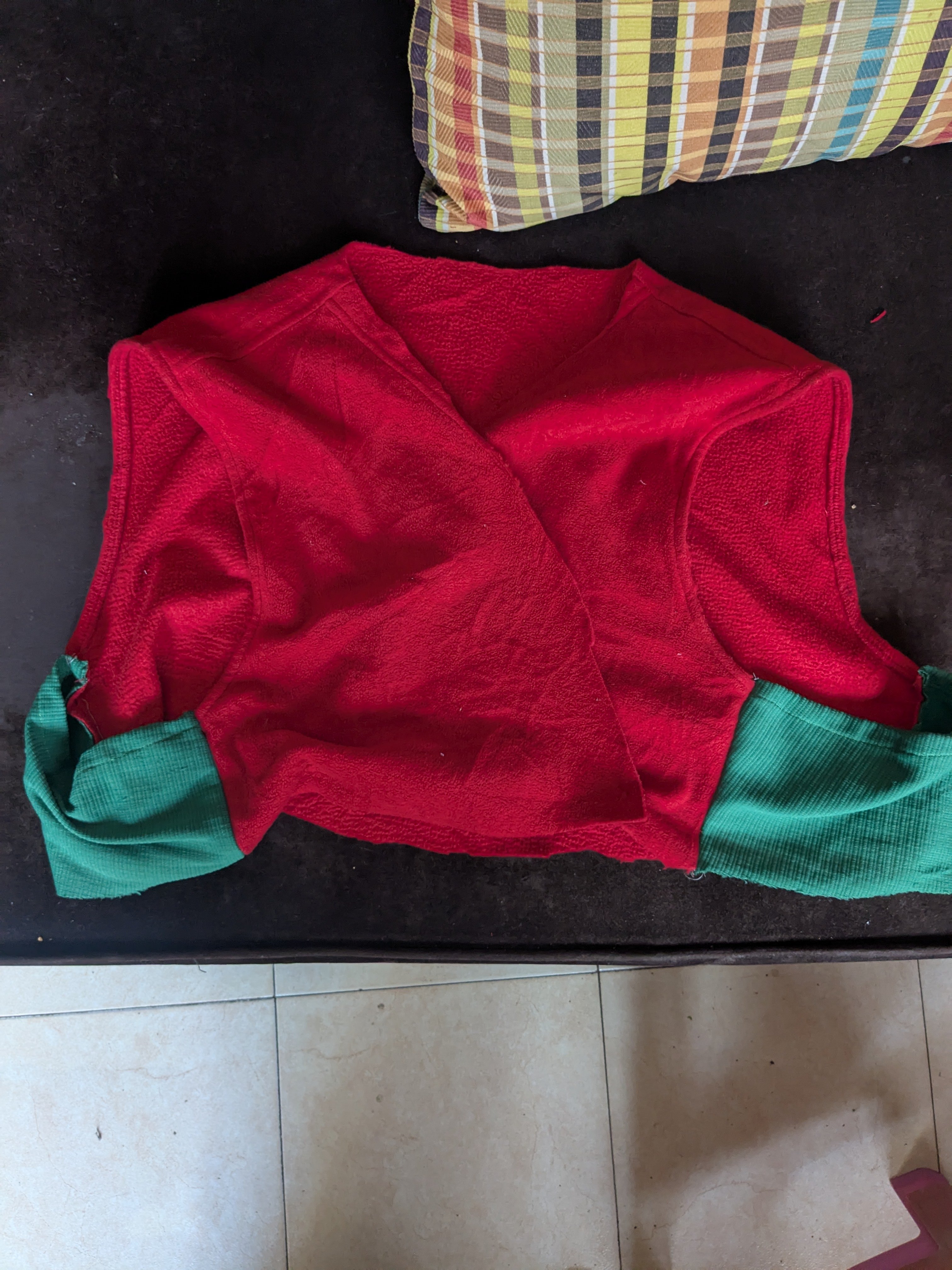 The wings were attached to a harness made with fleece fabric using epoxy. Straps with parachute clips were sewn to the front of the harness soso that the breastplate would be attached to it.