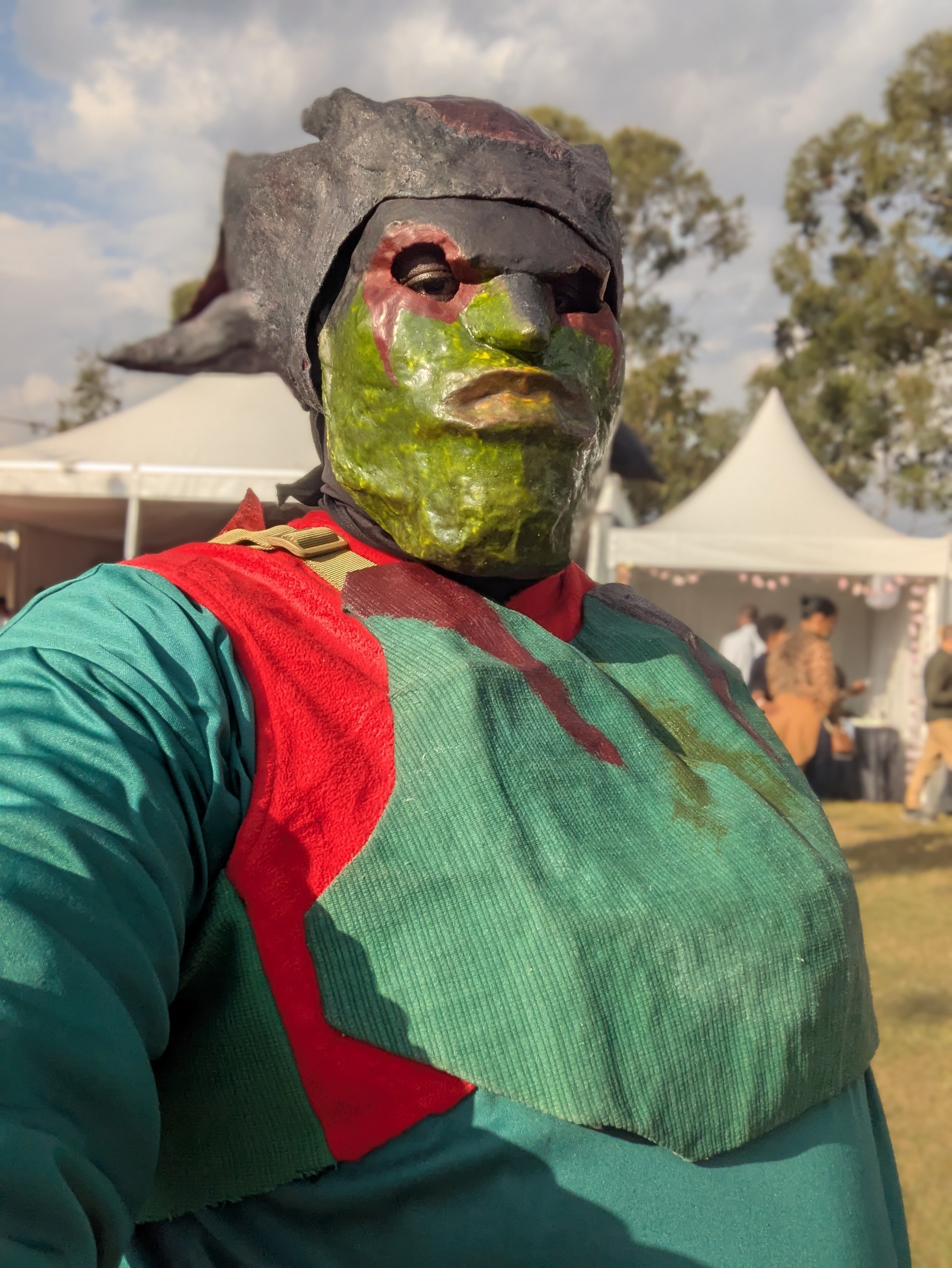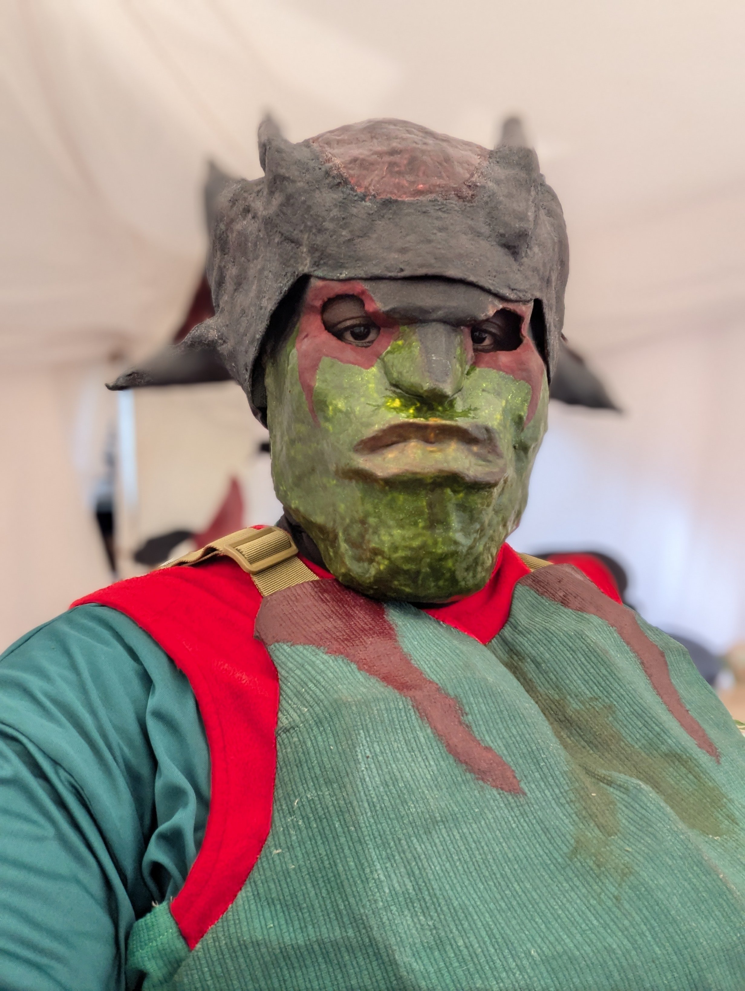 During the prep stage of the build, it was decided to split the head into a headpiece and face mask to ensure ease of wear while maintaining as close a fit as possible.