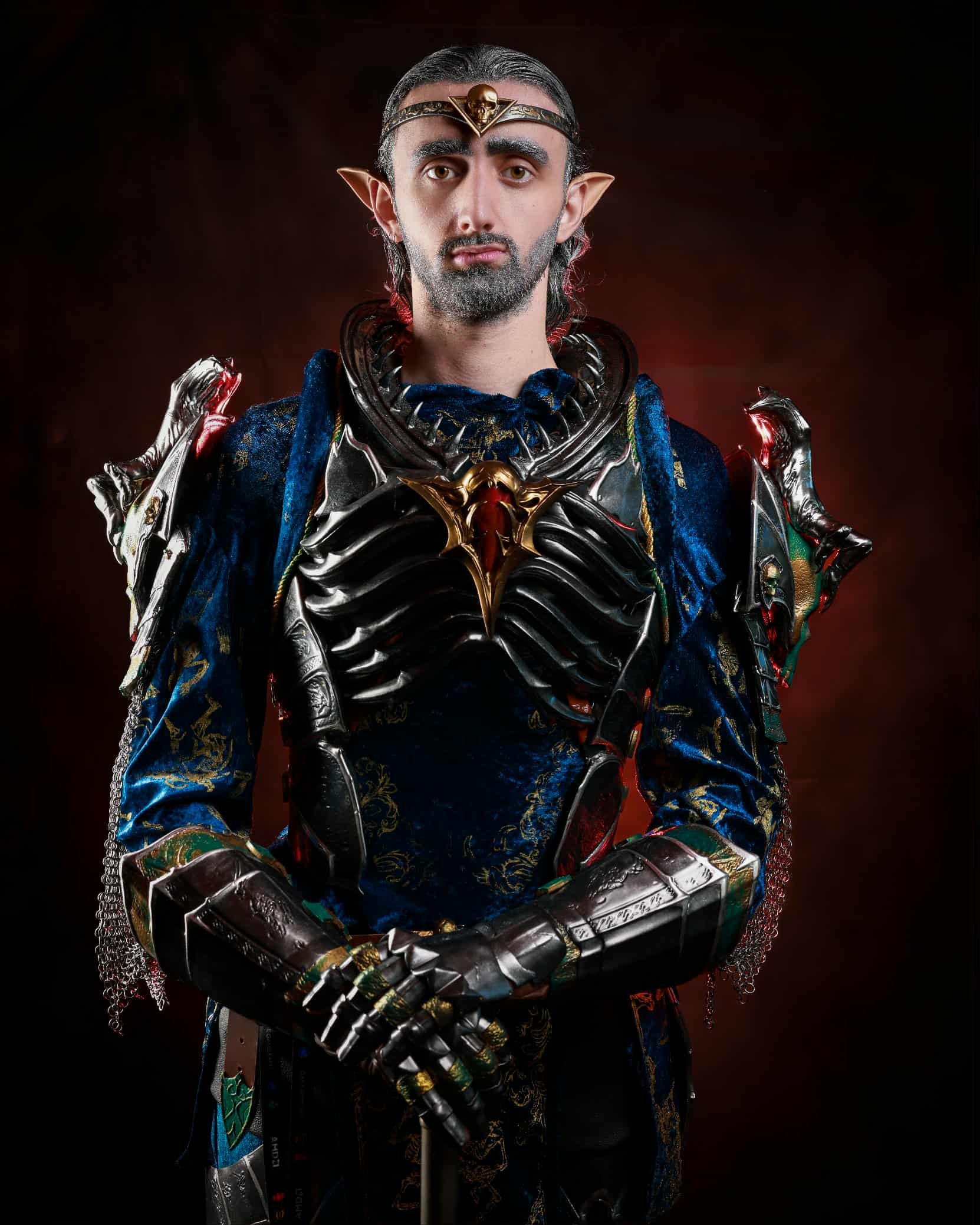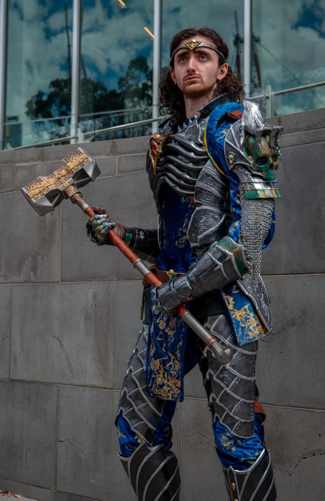 Most of Ketheric's armour was modelled using game files in Blender and FDM 3D printed and post processed with automotive fillers and wet sanding passes. Painted with acrylic lacquer gloss black, graphite powder, hand painted airbrush metallic paint and a thick coat of Alclad aqua gloss.