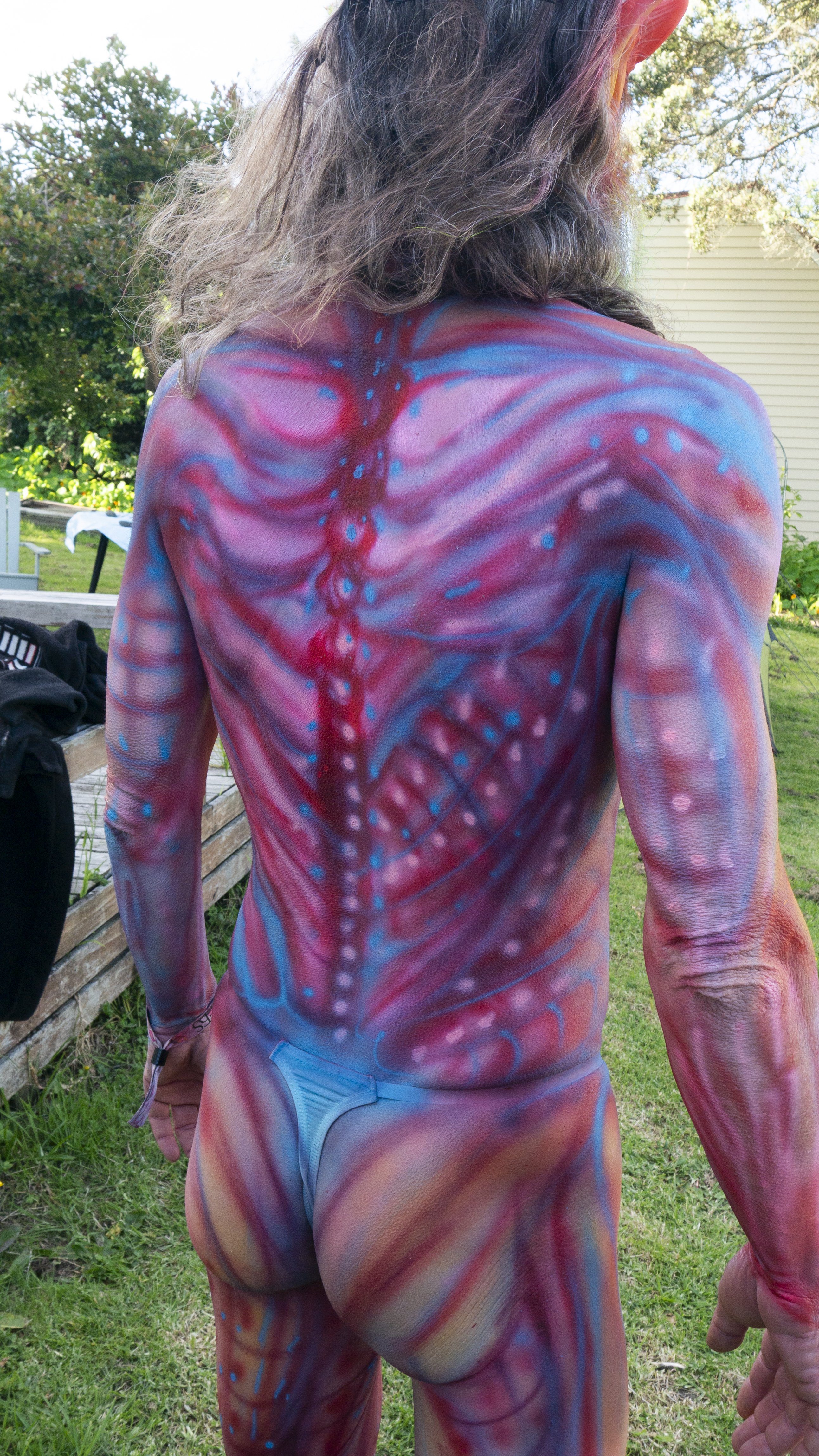 Neon demon: Airbrushed by Samuel Wheeler. Model: Dee Salt. Ponsonby, Auckland, New Zealand. Pro Aiir paints.