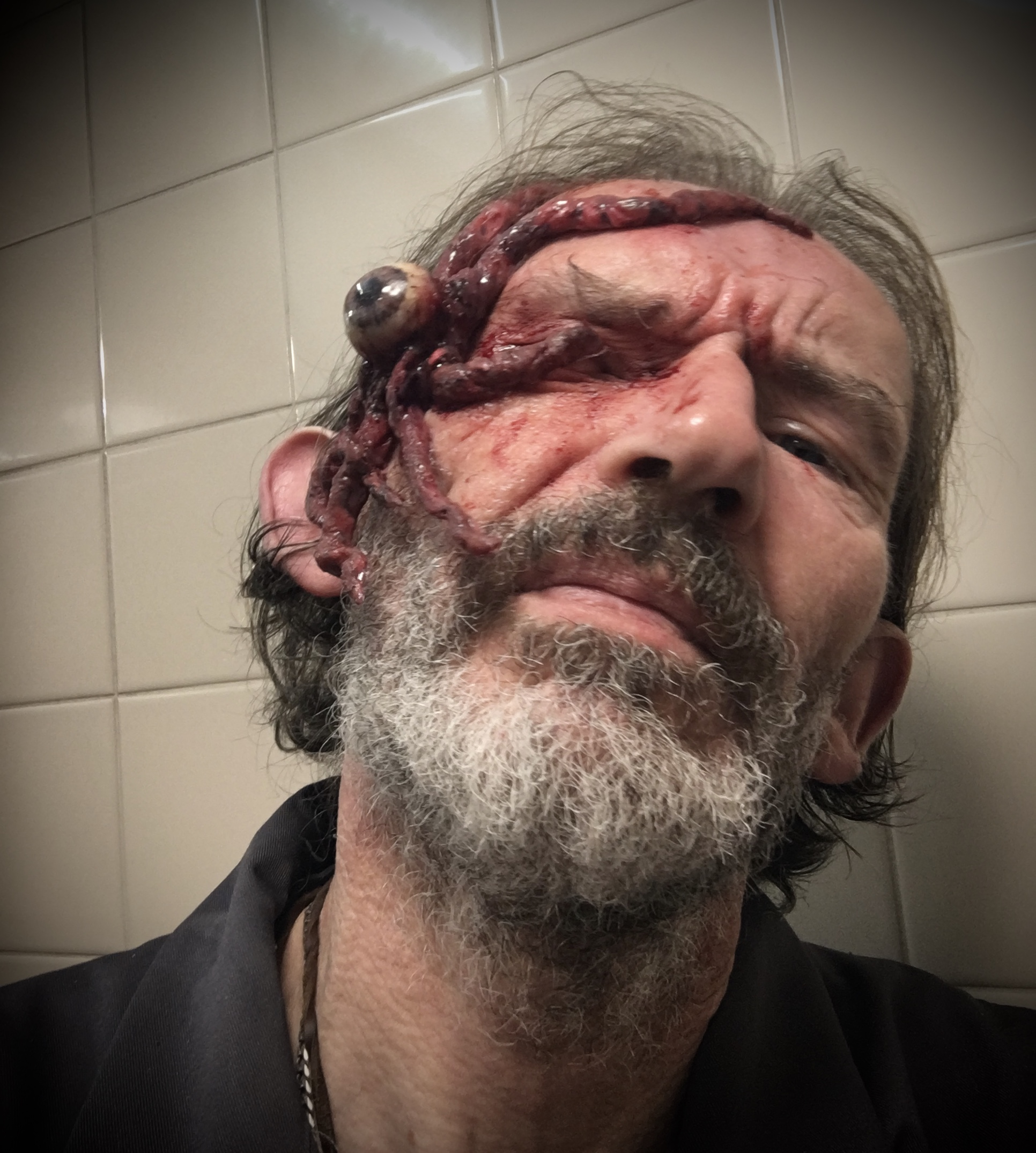 This is my Alien Earth inspired eyeball make up i did on myself for Halloween. I lost my Right eye 10 years ago so this seemed like a perfect gory make up that i could take to the extreme,(i know it only attacks the left eye but i just went with what i had), the eye ball creature had a bladder fitted so it would pulsate from a quick hand pump and the creature was sculpted by me and cast out in silicone. Video-