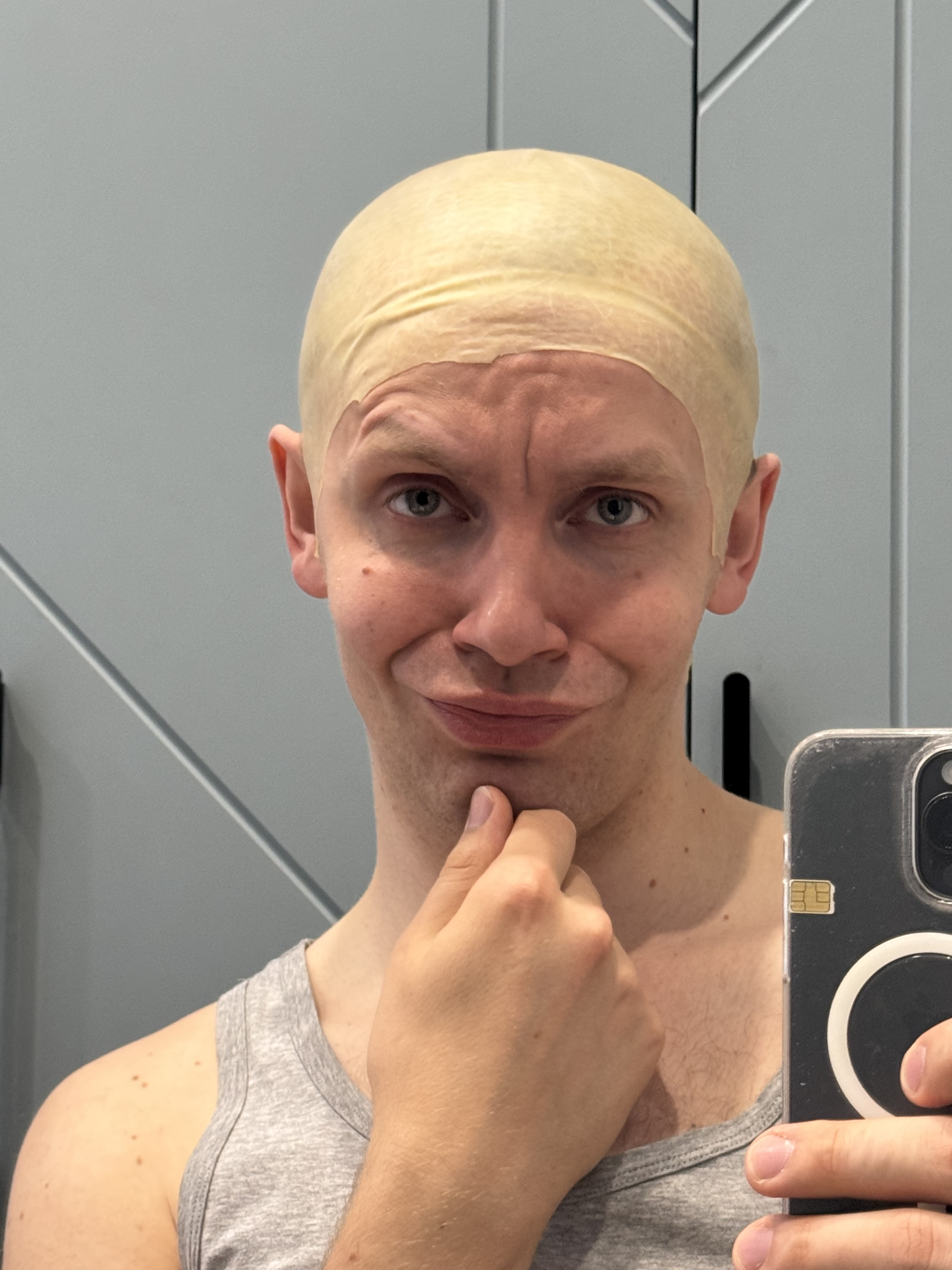 My friends helped me to make a lifecast of my head so I can sculpt Pennywise prosthetics.
