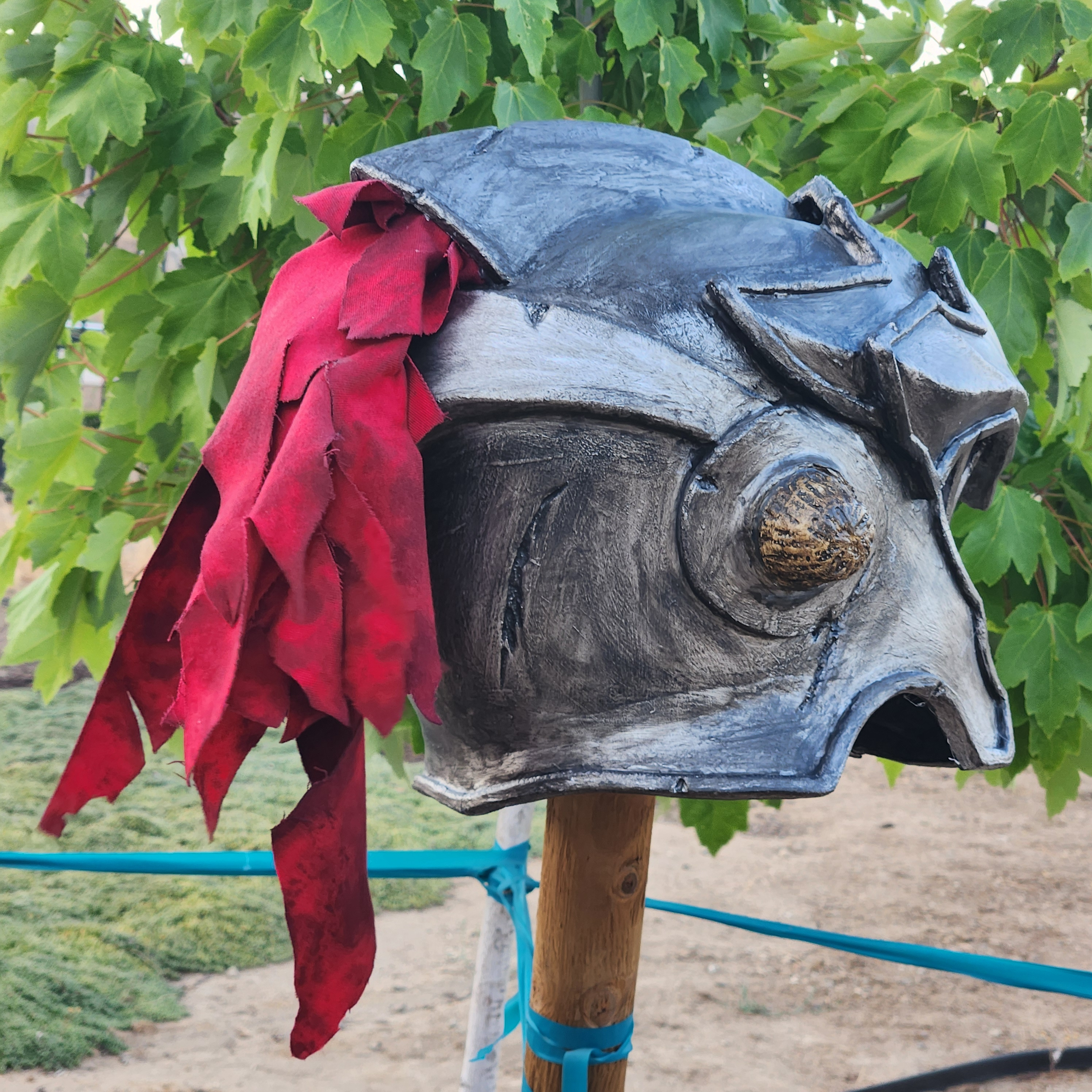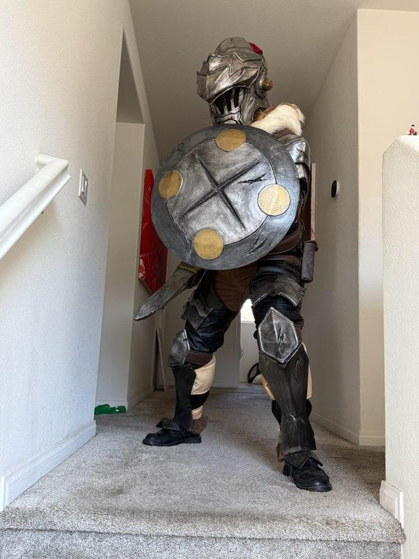 This was a costume that I had been interested in making for a long while and a little over a year ago, I had begun working on the helmet and as October grew closer, I decided I would finish it for that year's Halloween. Now this year I decided to make the sword and shield as well as create the belt with bags on the costume which, with the whole costume, was made from eva foam and fabric.