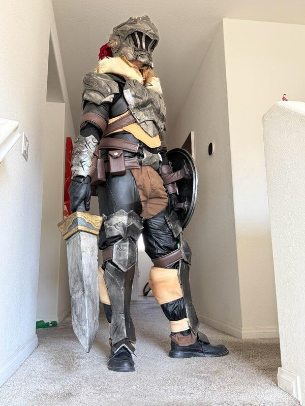 The toughest part of this whole costume was the sewing! I had never even touched a needle or sewing machine before this project and so I decided I would learn how to use a machine and make it by myself with little to no help. Every piece came out just how I wanted it to, the best part of making any of the armor pieces was the weathering process and getting to age it. I ended up using black and brown ink as color and black paint as a thickener just because I dont like working with a thin dark wash, I much prefer something thick.