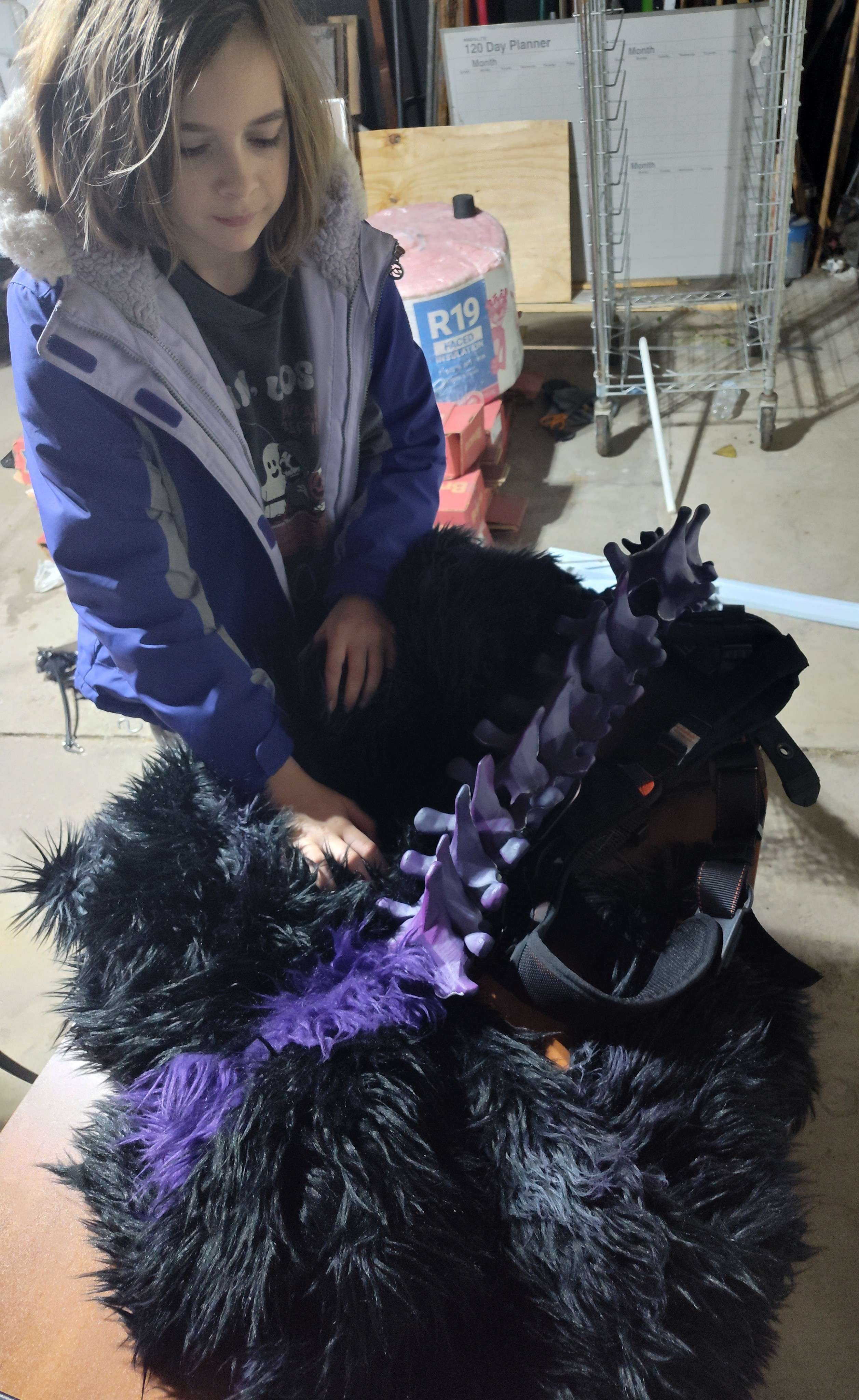 This is my daughters creation everything except for the climbing suit is all handmade by the family. Using foam techniques for the arms and extruded aluminum for the legs to make sure she stays safe and stable while moving around. She is typically a shy young lady and enjoys watching Stan Winston with us to get ideas and her ever growing passion for the arts. We would love some input on how to make Nightshade better this is our first time entering this kind of contest. Thank you for taking the time to look over my daughters passion project!