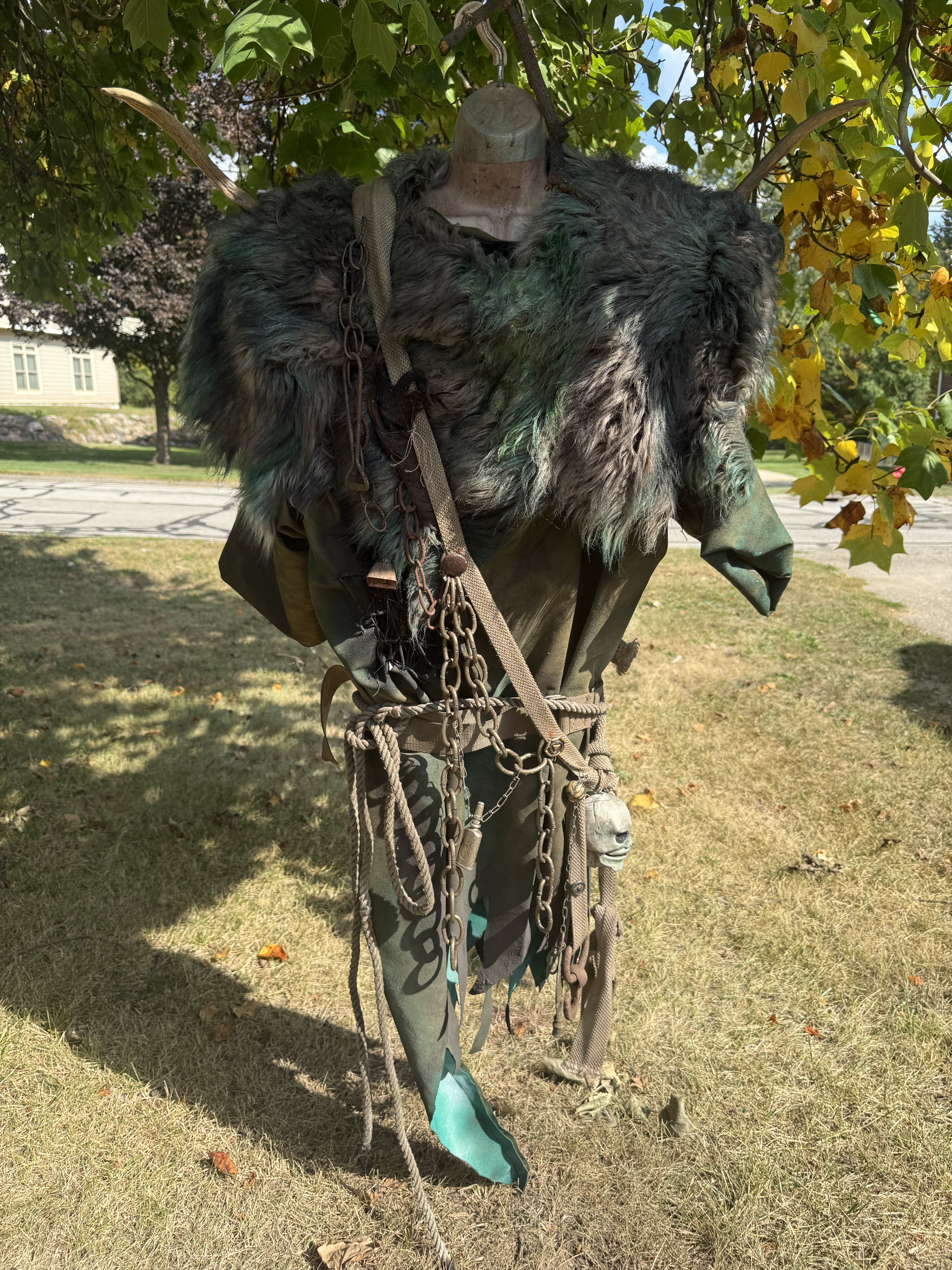 It was then covered with repurposed fur from an old blanket, attached using spray adhesive. Real deer antlers were inserted through the underside of the foam and secured in place, creating a natural and durable structure that gives Gaba a massive, menacing silhouette.