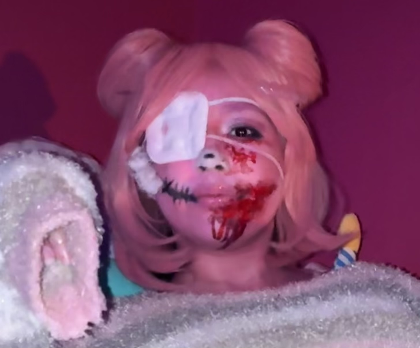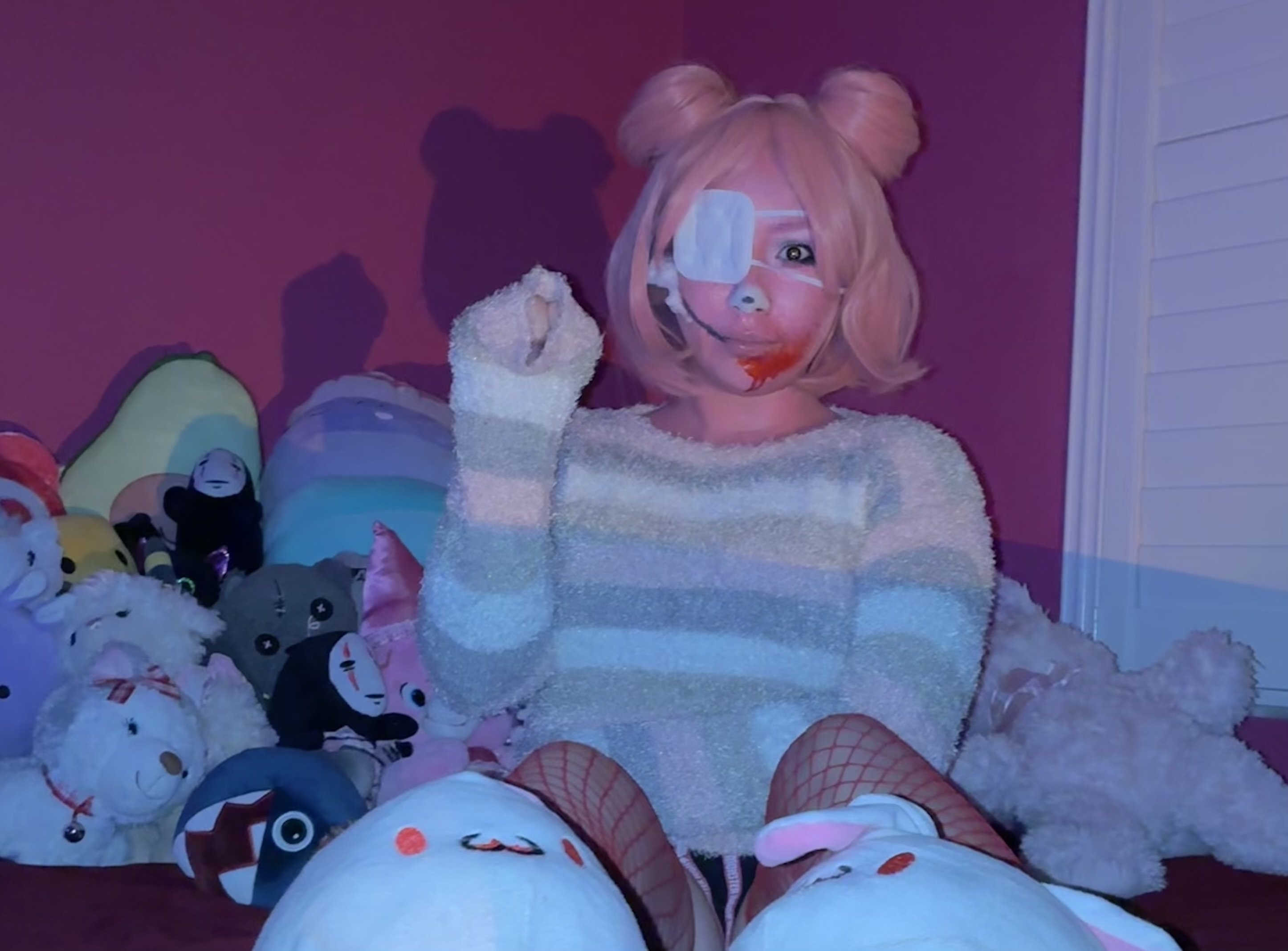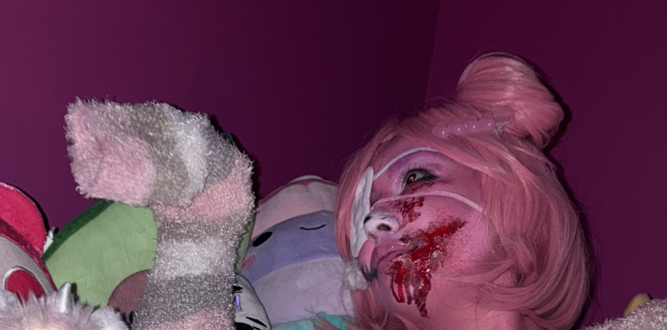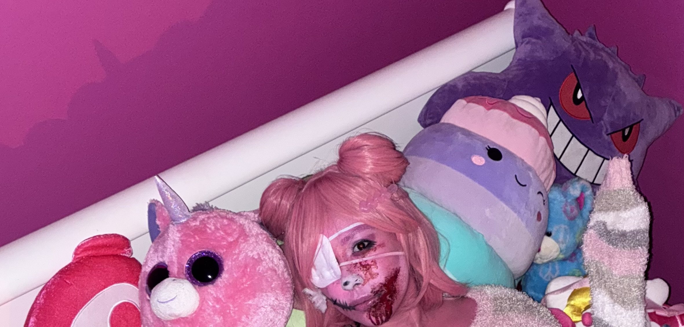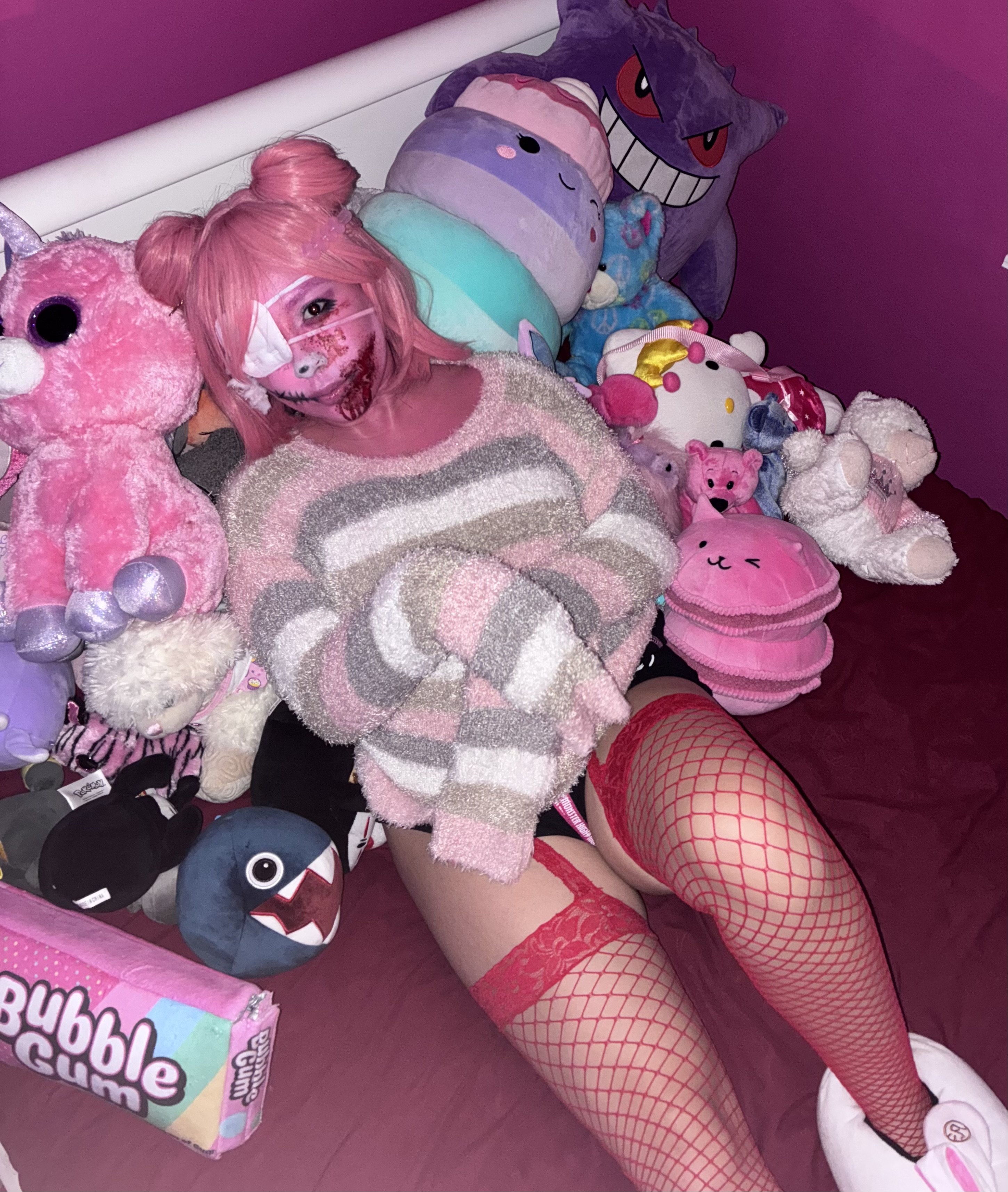 Theme: Plush toy turned feral — kawaii horror meets Y2K sleepwear, a soft-scary dream that blends childlike nostalgia with handmade menace 💕