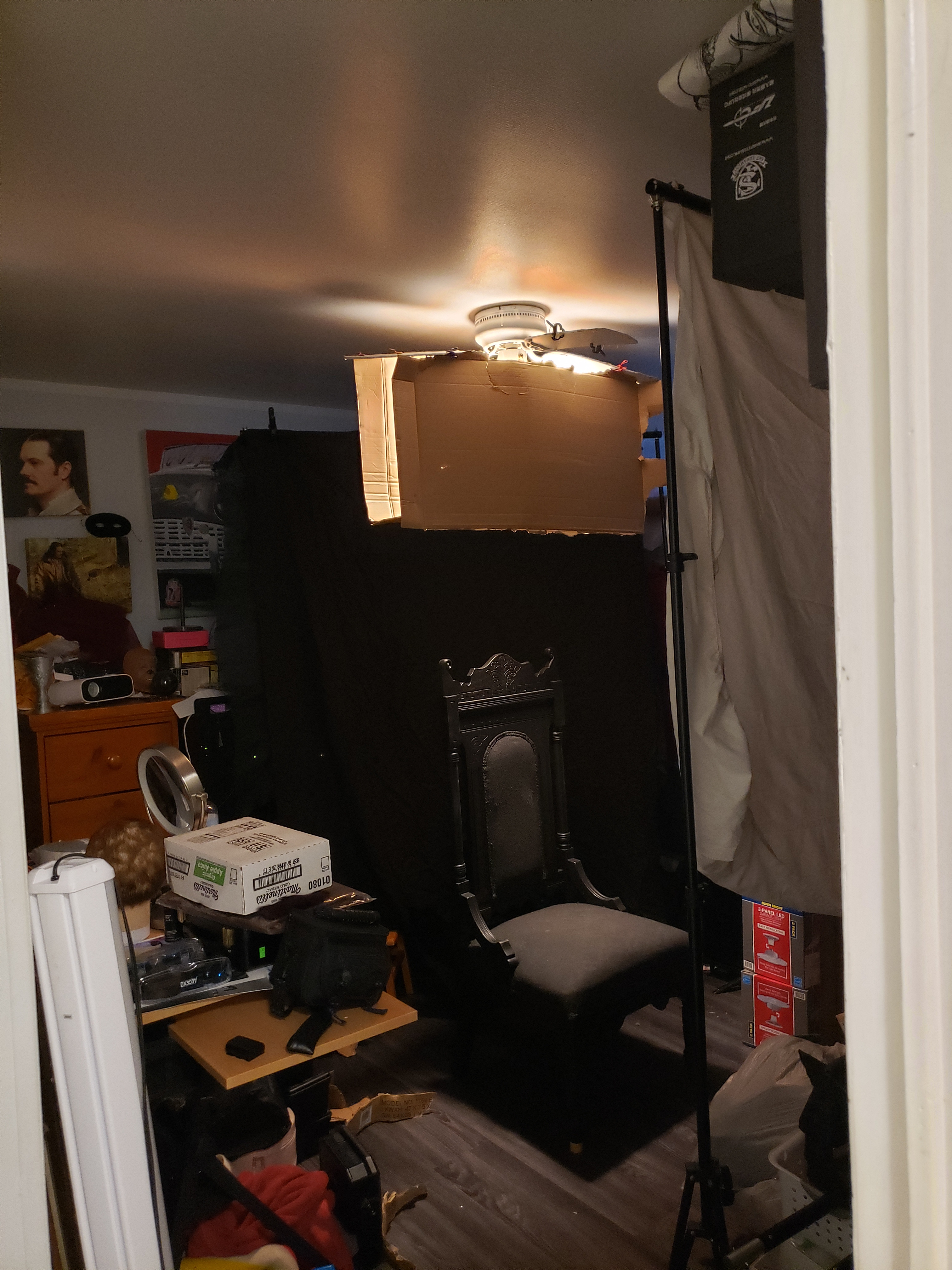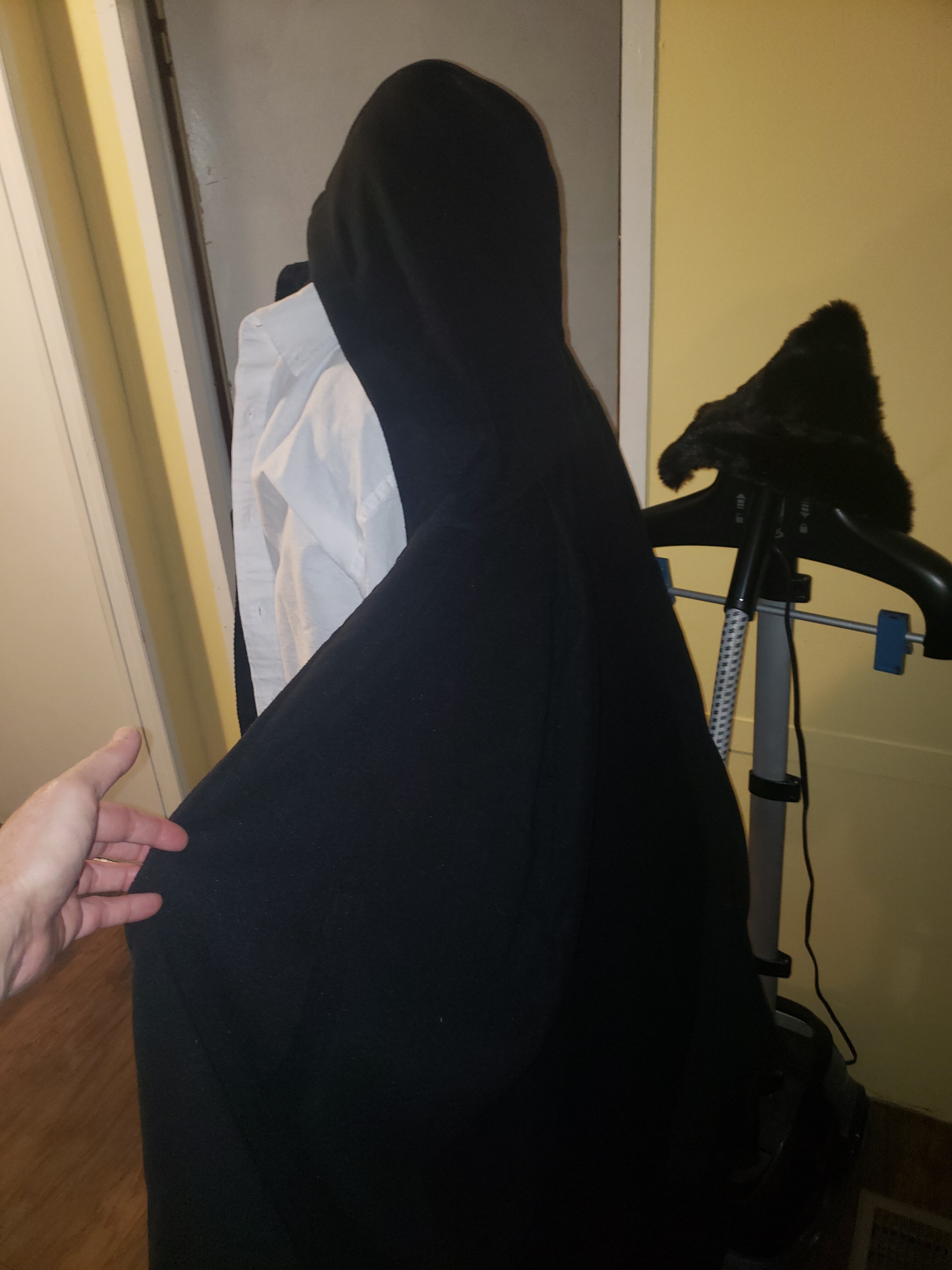 Because the hooded robe scene in the end of the last movie is so brief, I was able to use a no arms, shawl type that I had won for free in the Wish app years ago and just photograph it from angles not showing the armhole area.