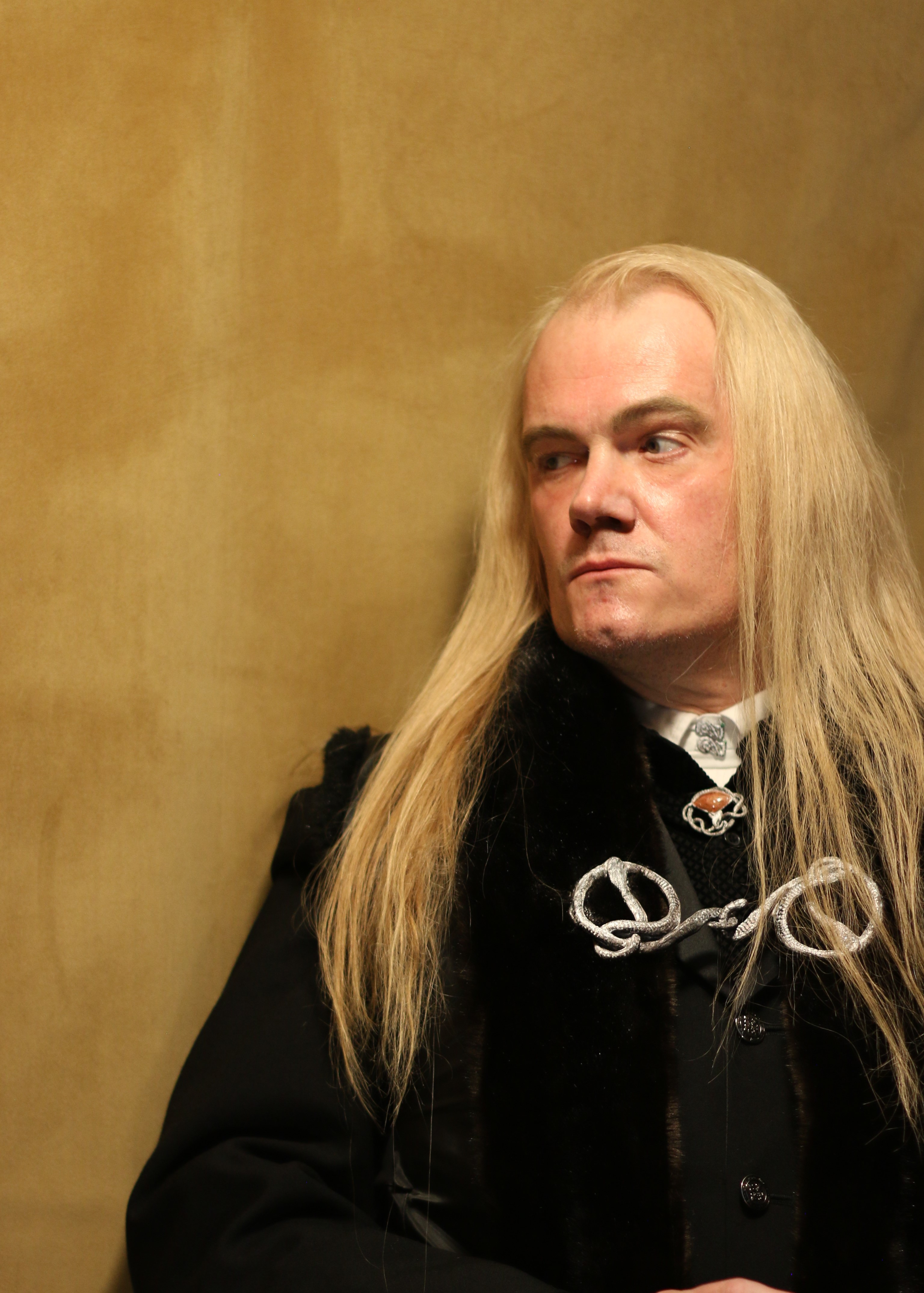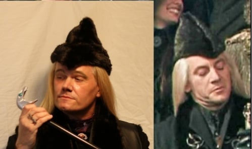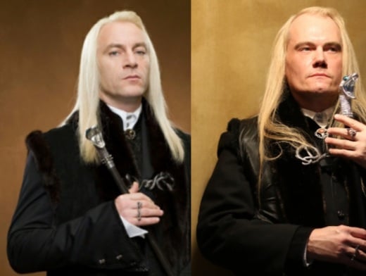 In the following, I will share my props, process and special effects makeup steps to coming as close as I could to Lucius Malfoy from the first movie to the last and back again to my version of Lucius attending Hogwarts as a young man.