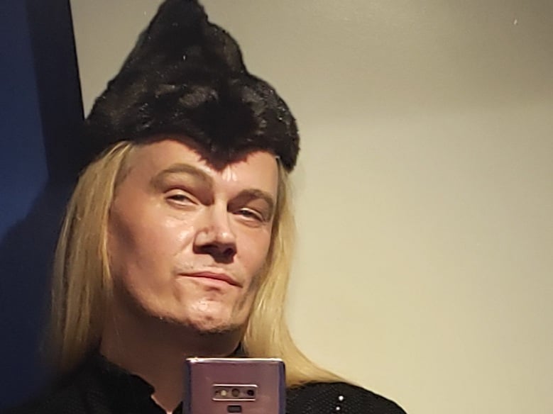 Although I can grow some stubble, it was not in the pattern of Lucius. I used alcohol markers (cleans with alcohol wipes) as I did not have the ability to spackle myself with liquid paints and a stipple brush while looking in the mirror. In some scenes he has gray stubble and in other ages he has black. My marker set has many shades so I could do some lines (ultra fine tip), some dots and some overall coverage (put down first layer).