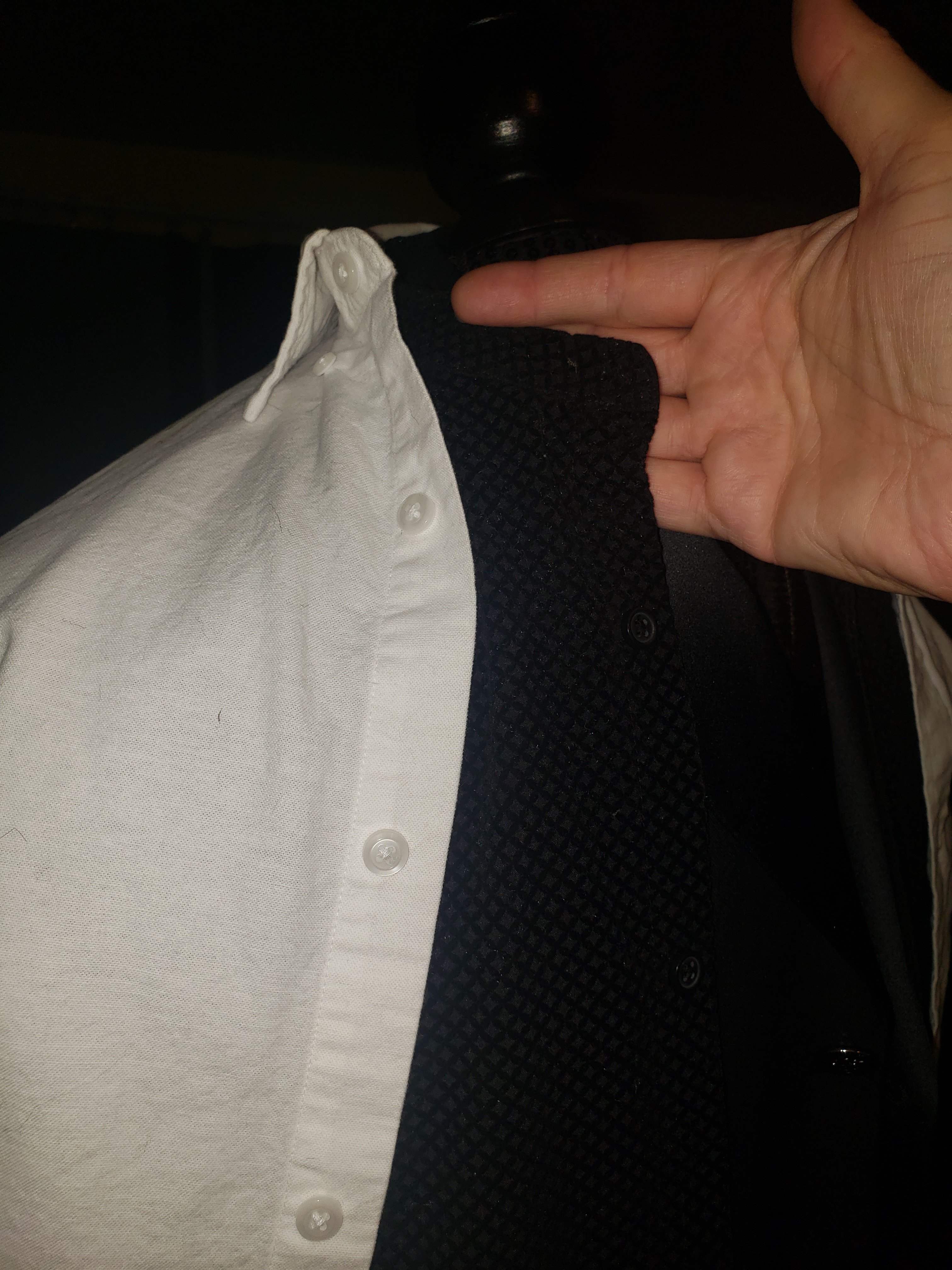For the black shirts (different scenes), I used my own black shirts that had black buttons and covered the exposed buttons with the vest and coat.